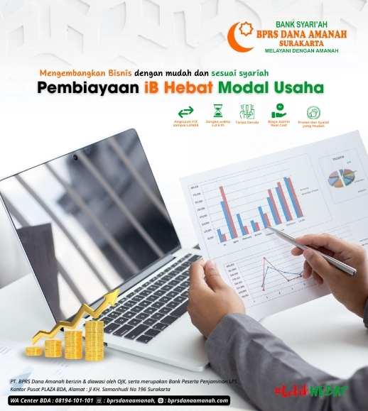Fasilitas Pembiayaan di BPRS Dana Amanah Surakarta yang diperuntukkan bagi Nasabah yang ingin mengembangkan usahanya. Dengan prinsip syariah, usaha menjadi semakin berkah. Selain itu angsuran yang FIX sampai dengan Lunas dapat menenangkan hati.