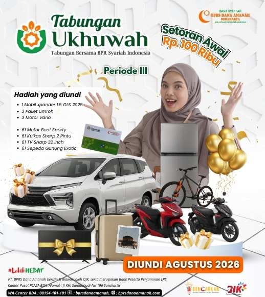 Produk “TABUNGAN iB UKHUWAH” Tabungan bersama BPR Syariah Indonesia merupakan produk tabungan dengan akad mudharabah mutkaqah dengan tambahan assesoris produk yaitu berkesempatan mendapatkan hadiah-hadiah yang telah ditentukan mekanisme dan tata caranya. Assesoris hadiah-hadiah tersebut merupakan wujud penghargaan yang ditujukan untuk nasabah penabung yang telah mempercayakan menyimpan dananya di BPR Syariah.